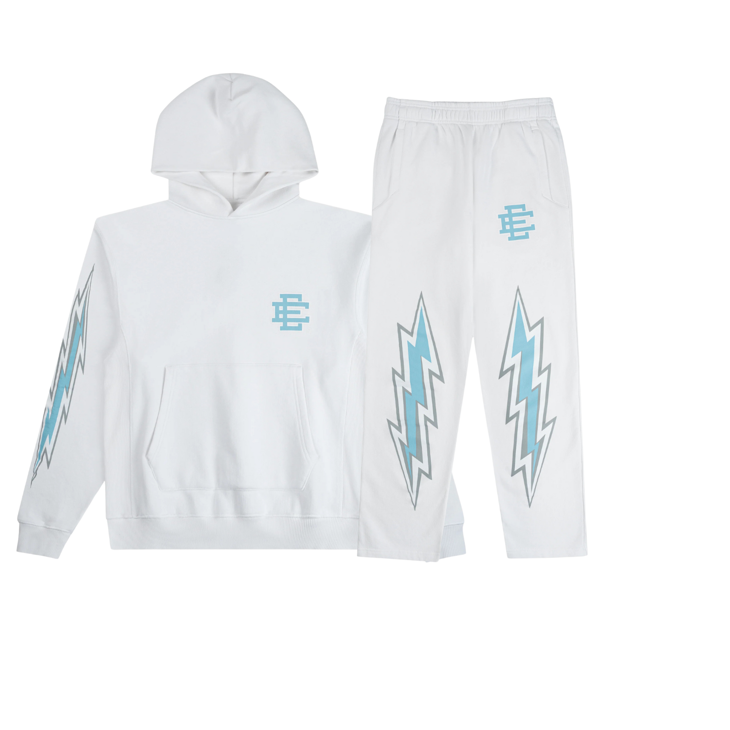 The EE® Basic Tracksuit – White delivers a clean, elevated look through minimalist design and premium comfort. Crafted from high-quality materials, this matching hoodie and sweatpant set offers a relaxed fit with durable construction for everyday wear. Finished in a crisp white colorway with subtle EE® branding, it’s a versatile essential perfect for layering, lounging, or stepping out with effortless style.